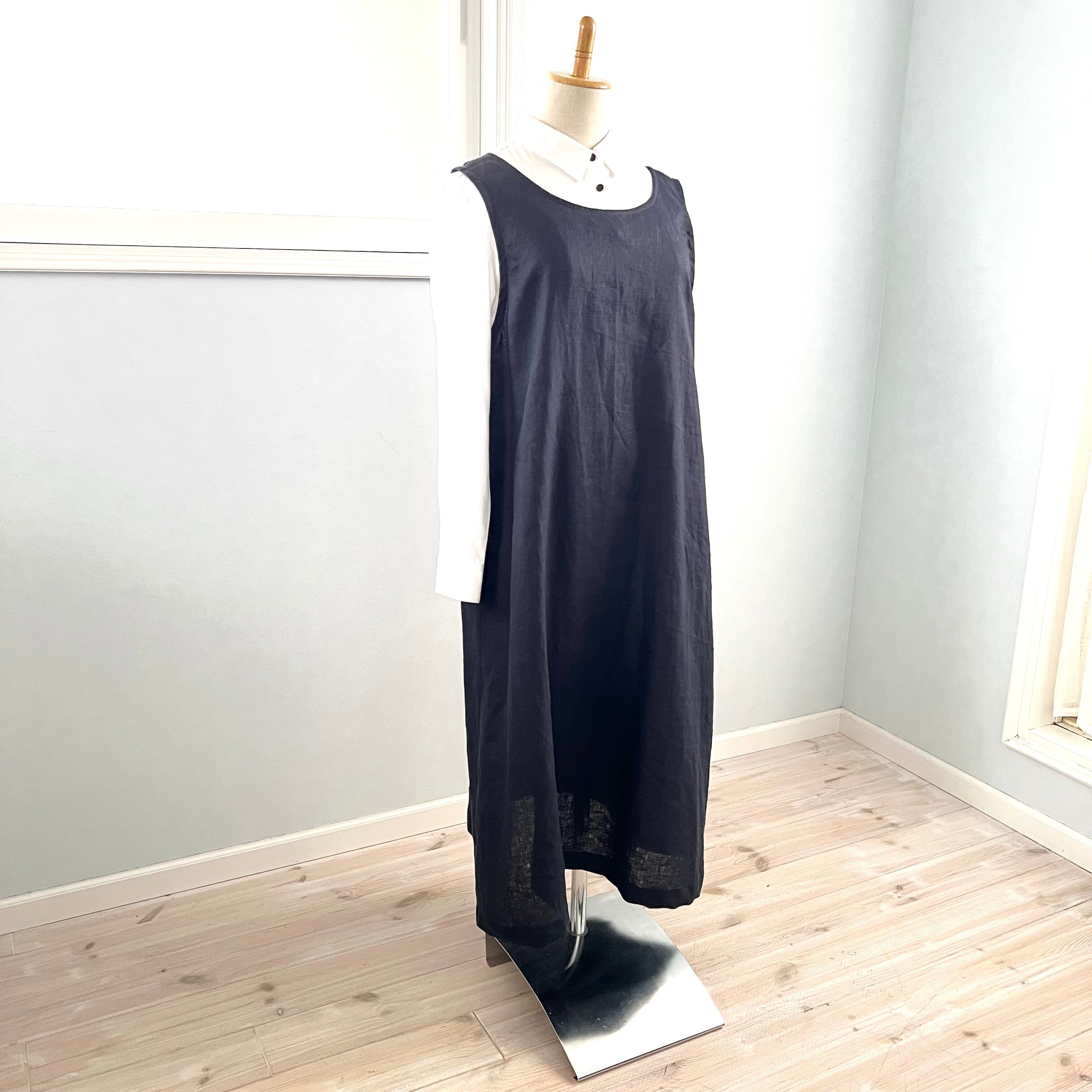 【限定1】小柄さんのリネンジャンパースカート ネイビー Sサイズ