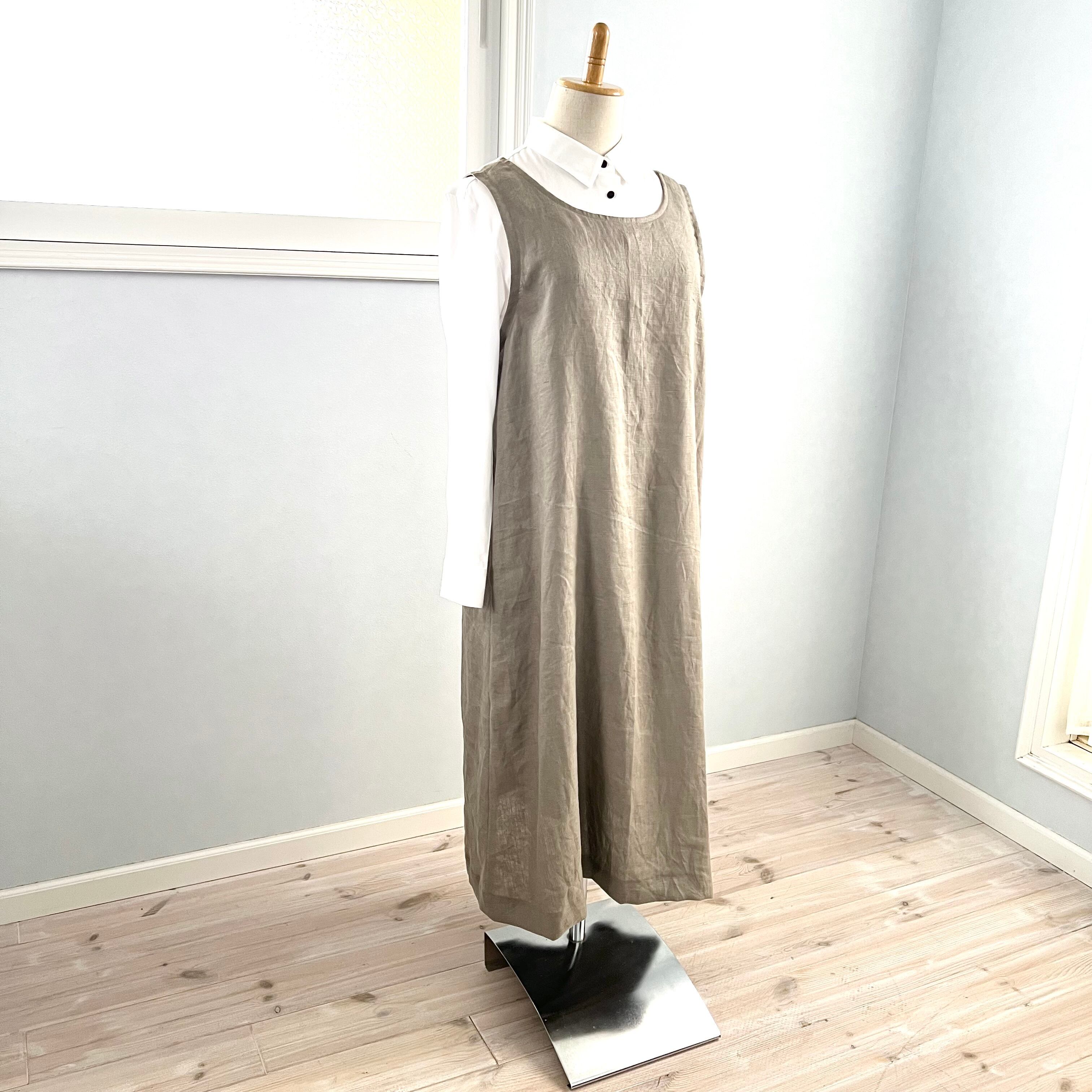【限定1】小柄さんのリネンジャンパースカート カーキ Sサイズ