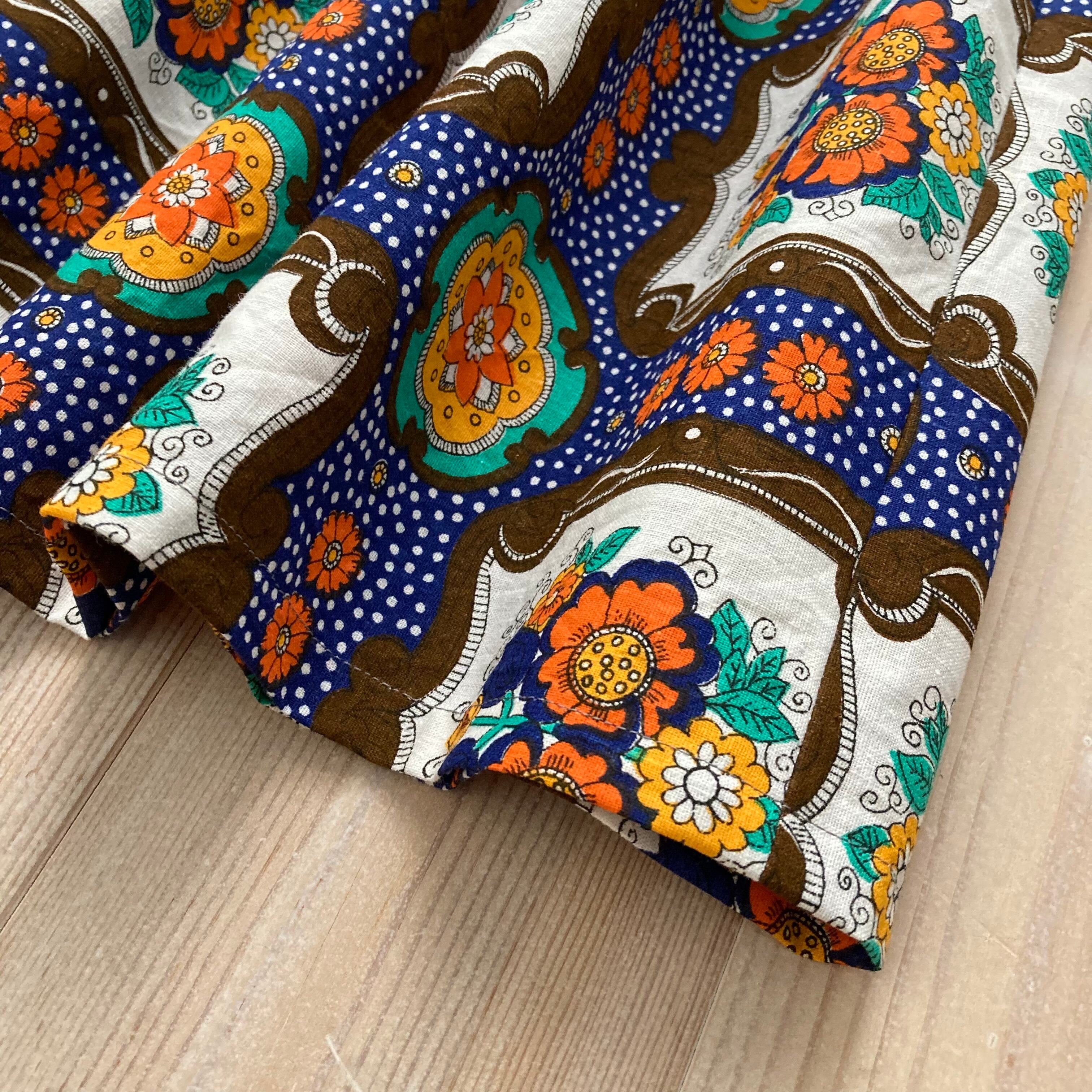 ドイツヴィンテージ生地 外国チックレトロ♪お花×格子のレトロ柄スカート Sサイズ