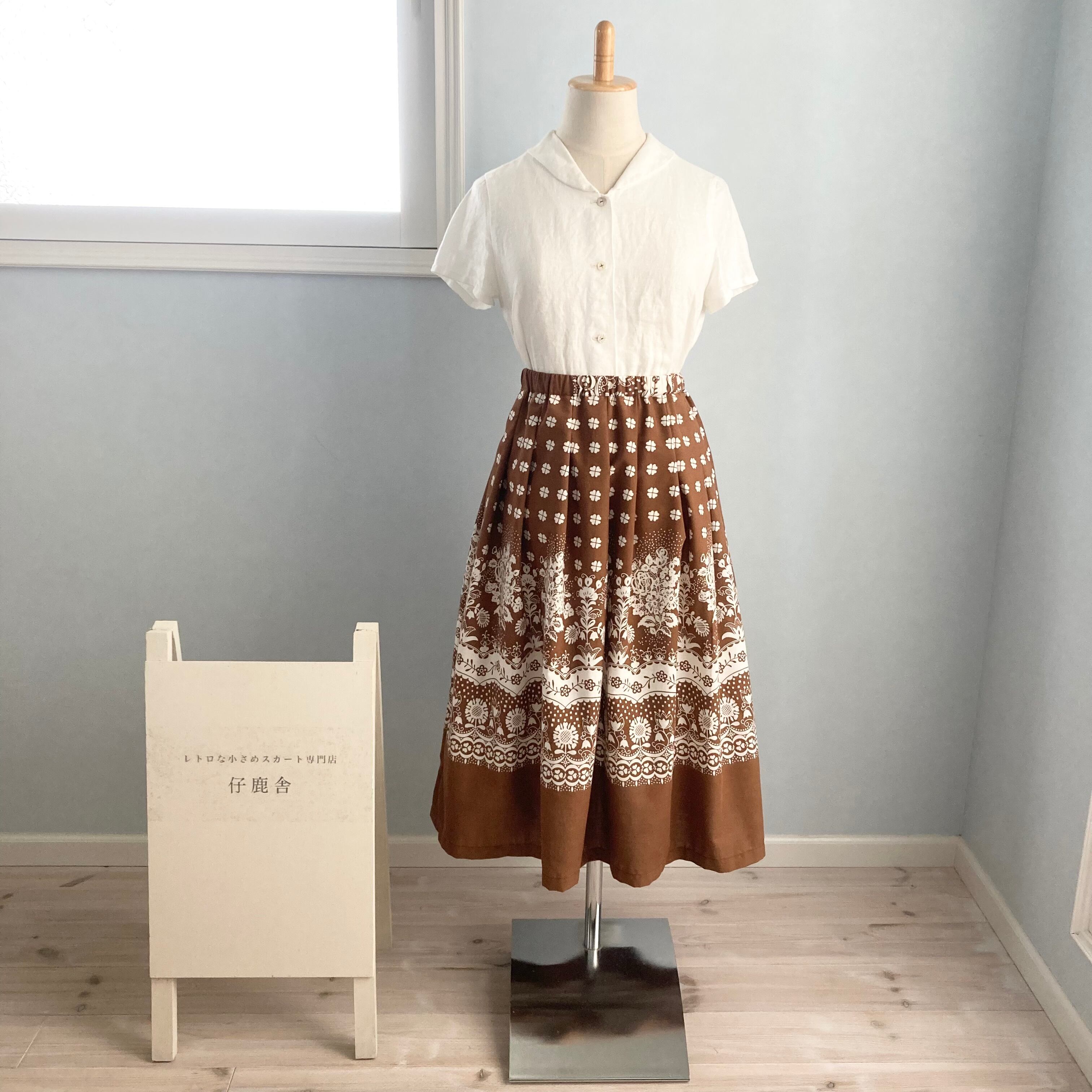 生地の両端に柄のアクセントがある特徴的なヴィンテージ生地の魅力をたっぷり生かした、仔鹿舎一押しデザインのスカートです♪