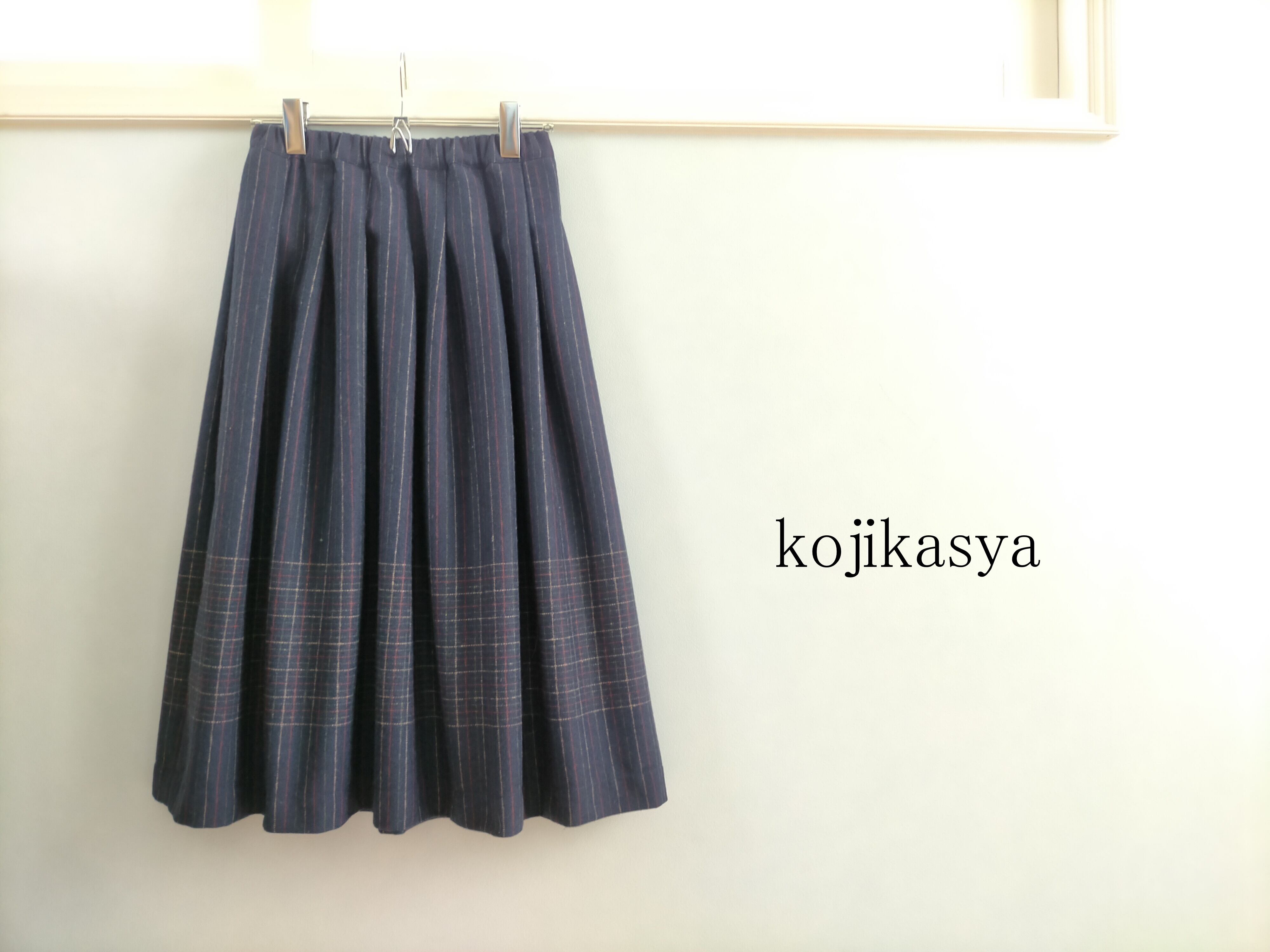 「冬。オーストリアヴィンテージ生地 レトロなウールスカート 紺 細チェック」を【受注製作】で再販致しました★