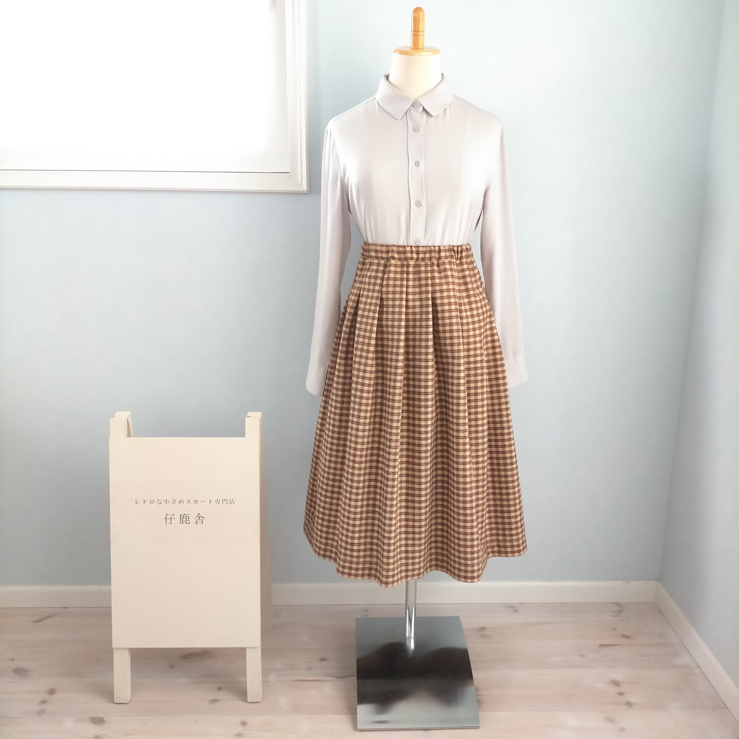 「冬。オーストリアヴィンテージ生地 レトロなウールスカート ベージュ×茶のチェック」を【受注製作】で再販致しました★