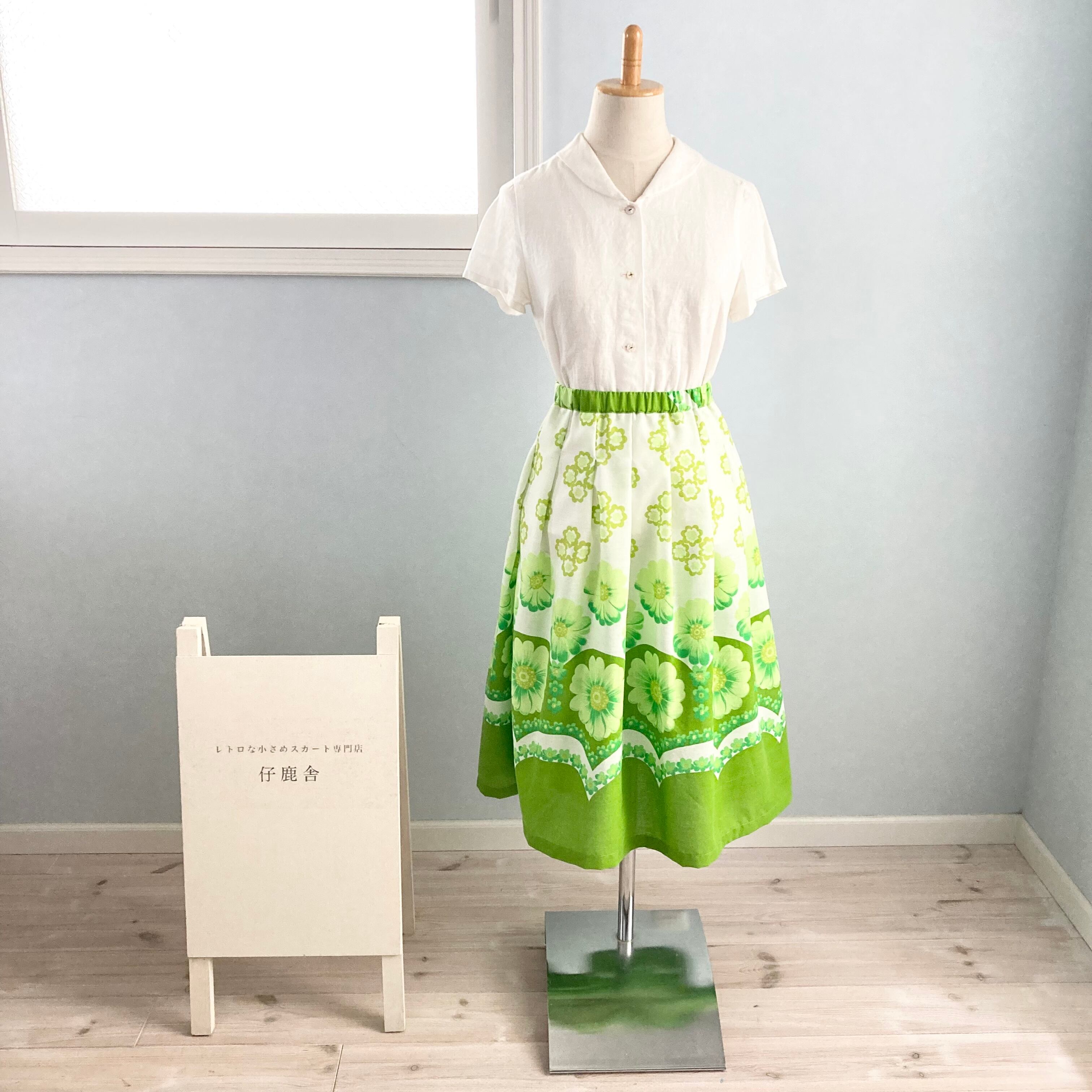 ドイツヴィンテージ生地 グリーン&黄緑 花柄レトロスカート