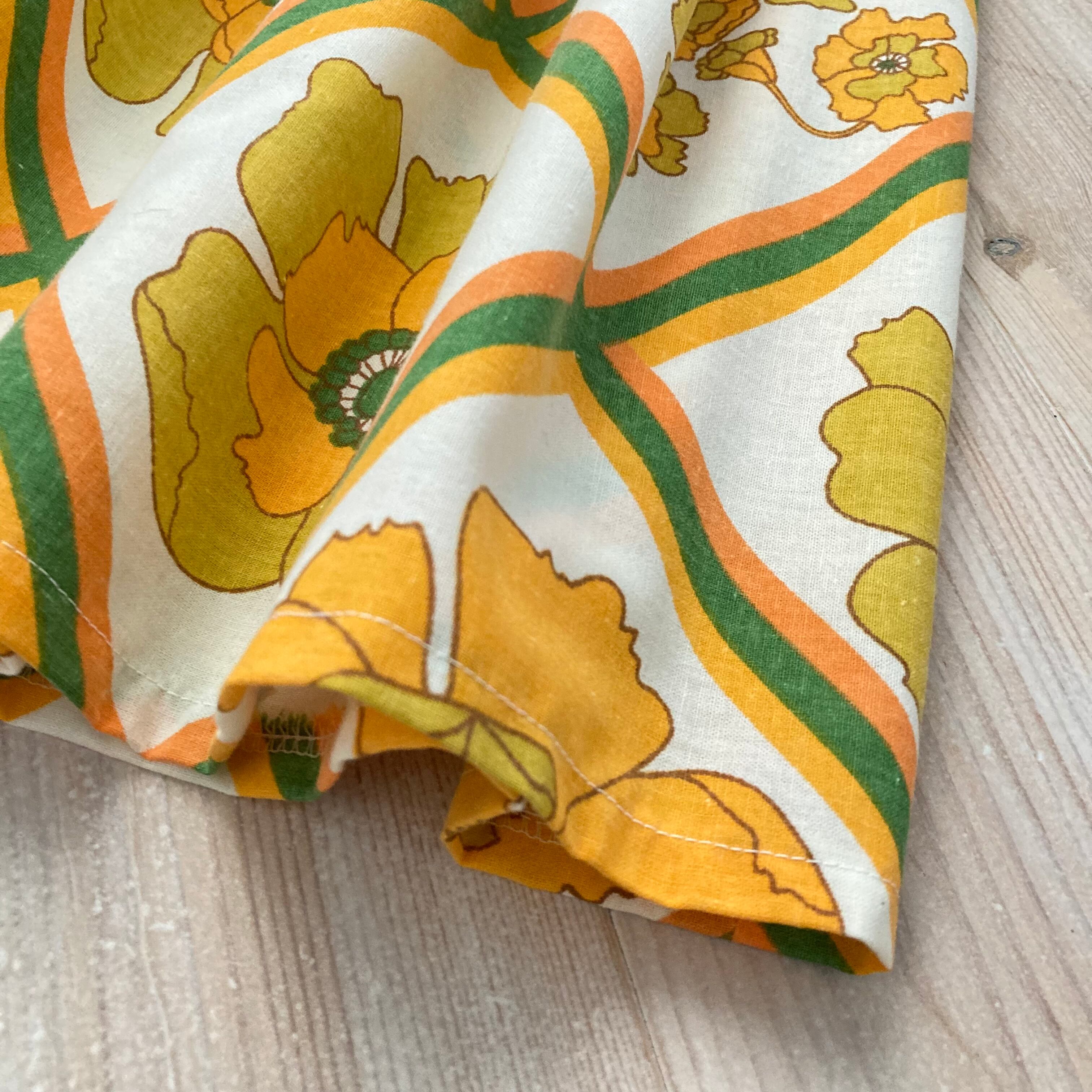【受注製作】ドイツヴィンテージ生地 格子×レトロ花柄スカート イエロー